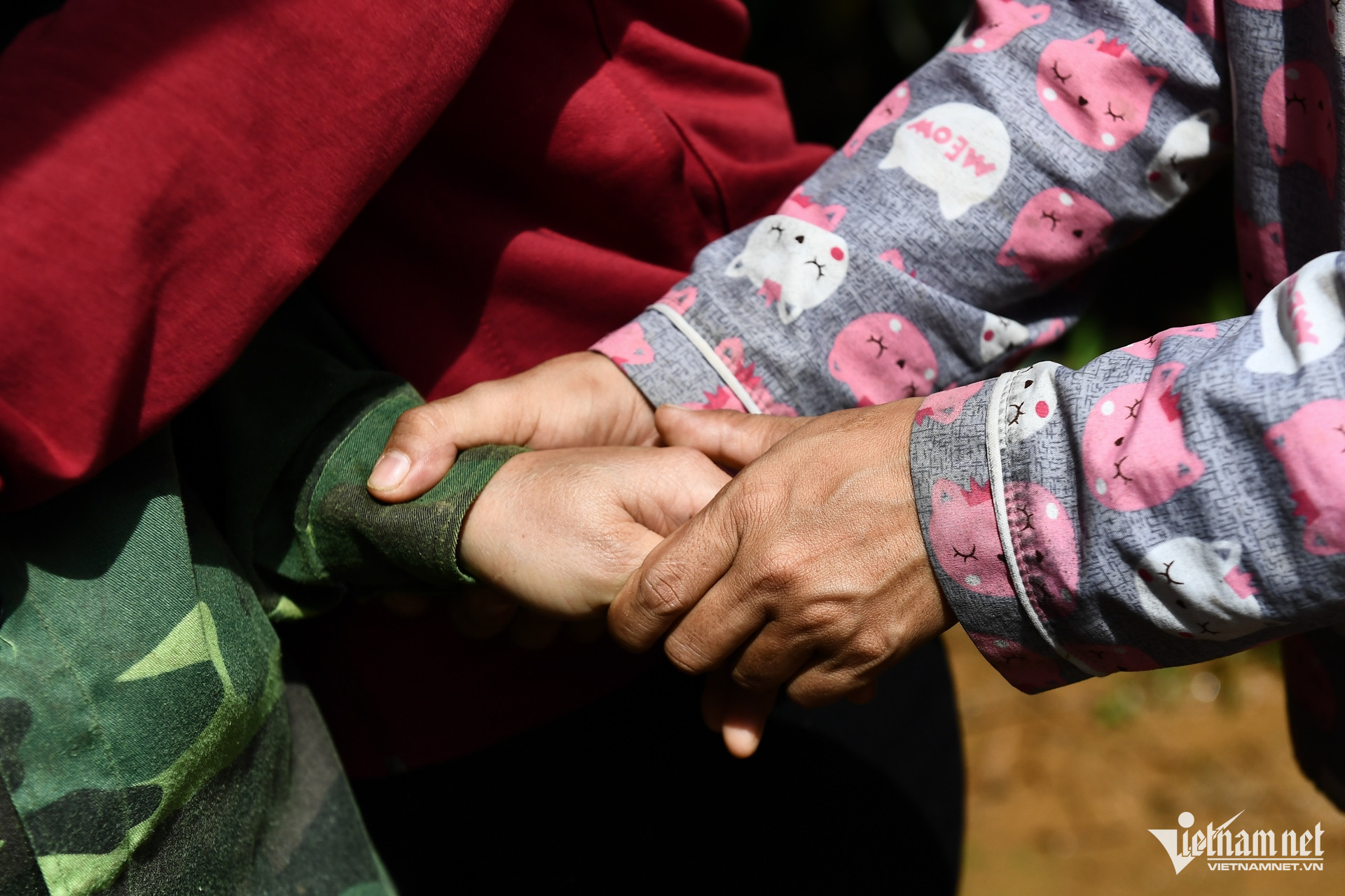 Họ hàng dìu bà Hoàng Thị Oanh vào điểm bàn giao thi thể để nhận mặt người thân. Chồng bà làm công việc nuôi cá trong khu vực thượng nguồn con suối chảy qua Làng Nủ. Lũ quét đổ về, ông đã gặp nạn. Những ngày qua, hôm nào bà cũng có mặt tại hiện trường đi từ nơi tìm kiếm đến điểm bàn giao để nghe tin. Sau những ngày mòn mỏi đau thương mong ngóng, tiếng khóc của bà đứt đoạn, nghe chua xót.