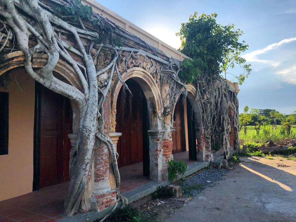 Wat Bang Kung (Thái Lan) là điểm đến bí ẩn được nhiều du khách yêu thích khi ghé xứ sở chùa vàng. Ngôi đền cũng nằm ẩn mình dưới bộ rễ của cây đa cổ thụ suốt nhiều thế kỷ. Nơi đây mang đến sự kết hợp liền mạch giữa vẻ đẹp tự nhiên và kiến trúc, cuộc sống văn hóa của con người. Rễ đâm xuyên qua các ô cửa sổ, tán lá xanh cao vút trên mái nhà tạo nên không gian ấn tượng. Ảnh: Bonjour Thailande. |