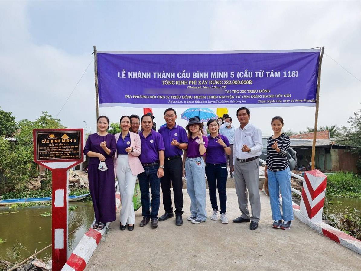Sau 2 tháng vận động các mạnh thường quân trong nhóm, kế hoạch xây dựng 4 cây cầu nối cù lao với trung tâm văn hoá, hành chính của xã Thuận Nghĩa Hoà, trị giá 1,3 tỷ đồng được khởi công.