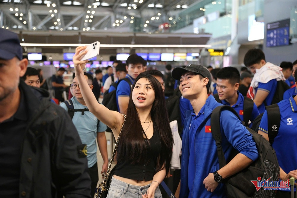 Những nhà vô địch ASEAN Cup 2024 đã hạ cánh xuống sân bay Nội Bài. Ảnh: Song Ngư
