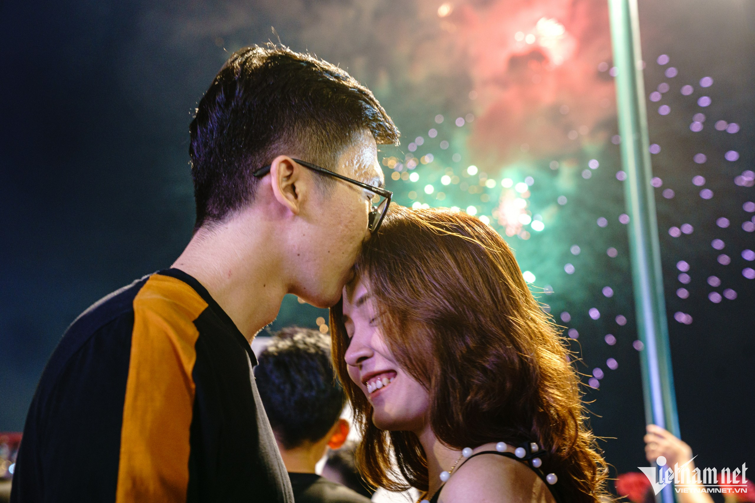 Trong khi pháo hoa đang trình diễn, bạn trẻ Kỳ Anh trao nụ hôn cho bạn gái. Đây là lần thứ 2 đôi trẻ này cùng nhau đón giao thừa. "Tôi hy vọng điều này kéo dài thêm nhiều lần nữa", Kỳ Anh nói.