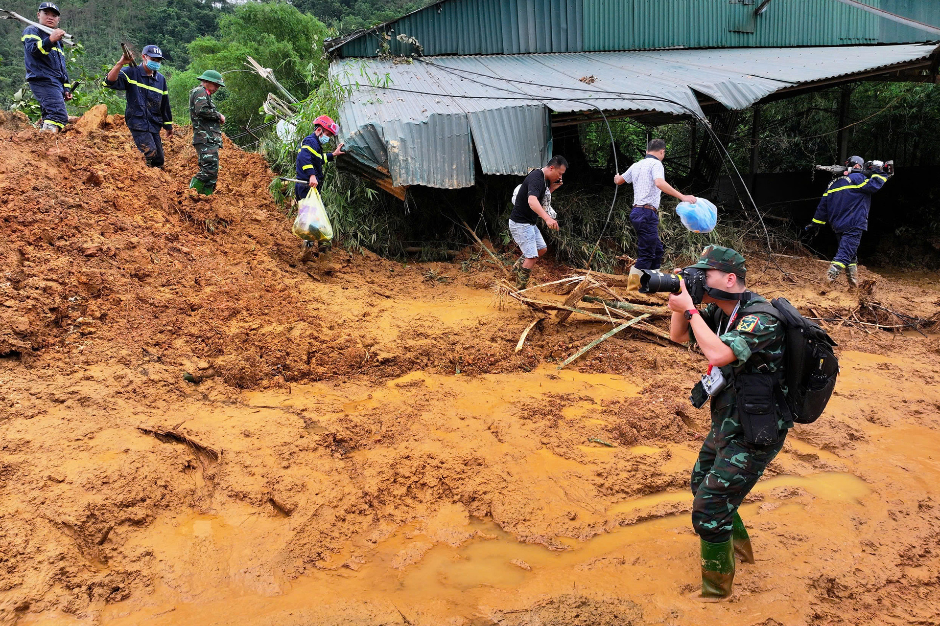 Tuấn Huy lội bùn tác nghiệp tại bản Nậm Buông (xã Việt Vinh, huyện Bắc Quang, Hà Giang) sau vụ sạt lở khiến nhiều người chết và mất tích vào tháng 9/2024.