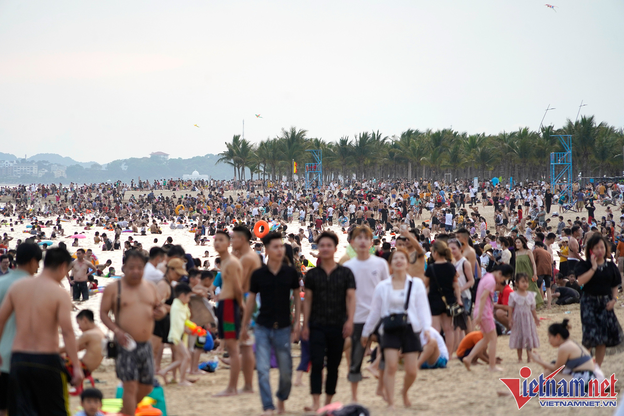 Cũng tại TP Hạ Long, do thời tiết thay đổi đột ngột nên bãi biển Bãi Cháy chỉ trong 2 ngày có hình ảnh đối ngược nhau. Ngày 30/4 trời oi bức nên đầu giờ chiều dòng người ùn ùn đổ về bãi biển để giải nhiệt khiến nơi đây ùn tắc cục bộ từ trên bờ lẫn dưới biển.