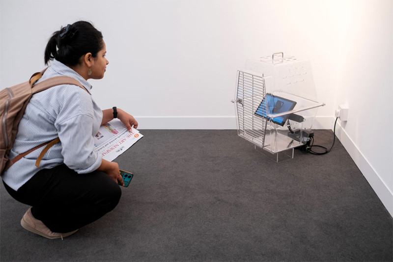 Điều đầu tiên thu hút bạn với tác phẩm sắp đặt của nghệ sĩ Wantanee Siripattananuntakul (Thái Lan) là âm thanh quang quác. Trong chuồng mèo có chiếc máy tính bảng đang chiếu cảnh con vẹt bị nhốt trong chuồng. Con vẹt xám Beuys của Wantanee được đặt theo tên nghệ sĩ người Đức Joseph Beuys.