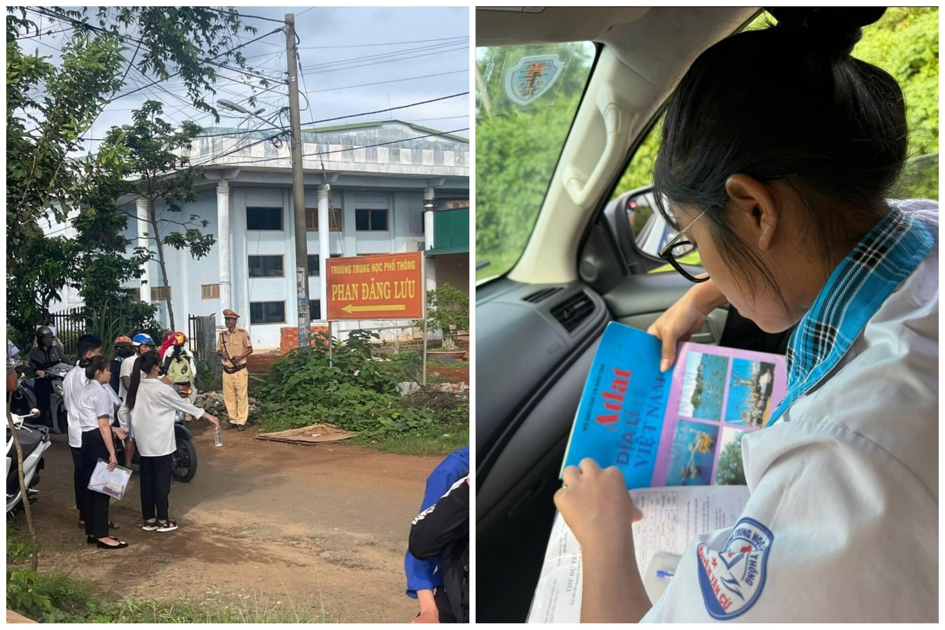 Còn tại huyện Krông Búk, tỉnh Đắk Lắk, một thí sinh khi đến điểm thi tốt nghiệp THPT phát hiện quên giấy tờ, được Đội CSGT-TT, Công an huyện Krông Búk tức tốc chở về nhà lấy giấy tờ.