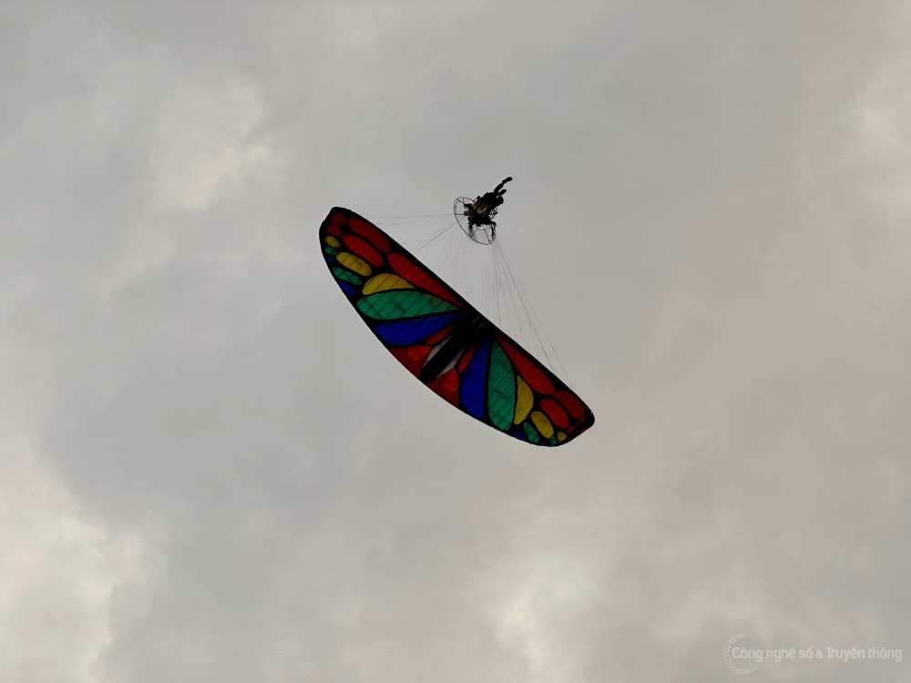 Ngồi trên xe mui trần, trời âm u, tôi chụp một người bay dù lượn với chế độ zoom 3x. Dù nền trời không thuận lợi, nhưng trong quang cảnh này máy vẫn thể hiện được màu sắc rất tốt trên chiếc dù bay.