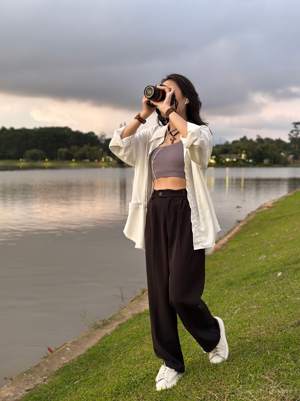 Sau khi dạo một vòng ở Thung lũng Vàng, chúng tôi lái chiếc xe cổ ra phố. Thời tiết hôm ấy nhiều mây đen, âm u chuẩn bị mưa nên không được ngắm hoàng hôn đẹp như thường lệ. Tuy vậy, tôi cũng chụp được tấm ảnh một bạn trẻ đang dạo ở Hồ Xuân Hương. Thời điểm chụp ảnh trời đã nhá nhem, song ảnh chụp chế độ chân dung vẫn bắt nét được cô gái. Làn da được tái hiện trung thực, các chi tiết ở tóc được xử lý khá tốt.