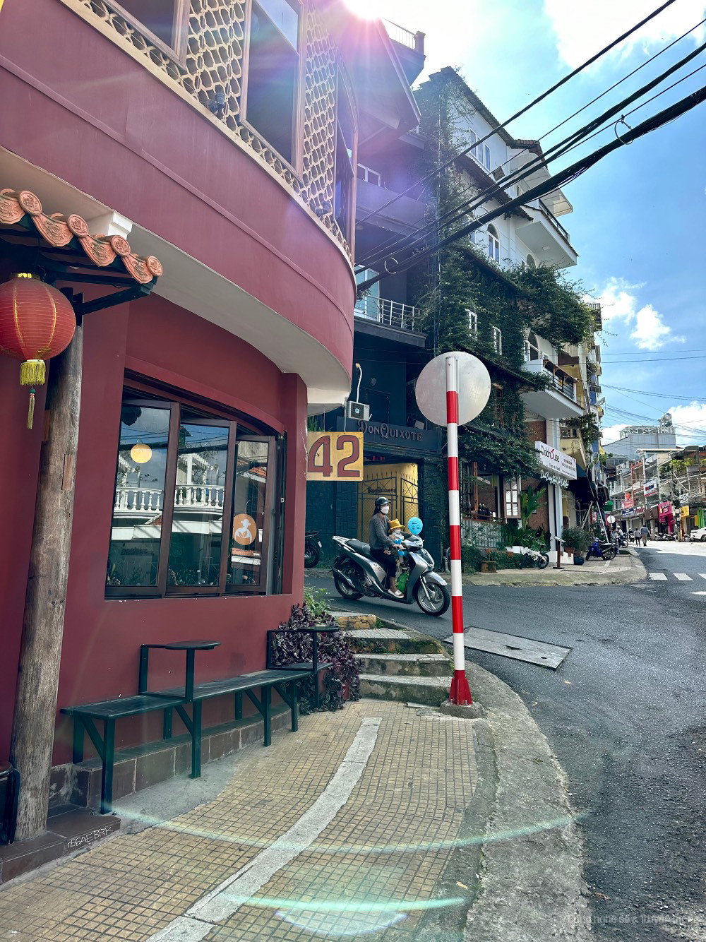 Dạo bộ ra khu Hoà Bình, khu vực trung tâm của thành phố. Những con dốc và các khối kiến trúc rất Tây luôn làm tôi yêu Đà Lạt. Tấm ảnh trên tôi chụp khi nắng gắt, cố tình lấy ánh nắng mặt trời chiếu xiên. Màu của bức tường không đúng lắm với thực tế song ở tầm một chiếc smartphone thì chất lượng như vậy là tốt.