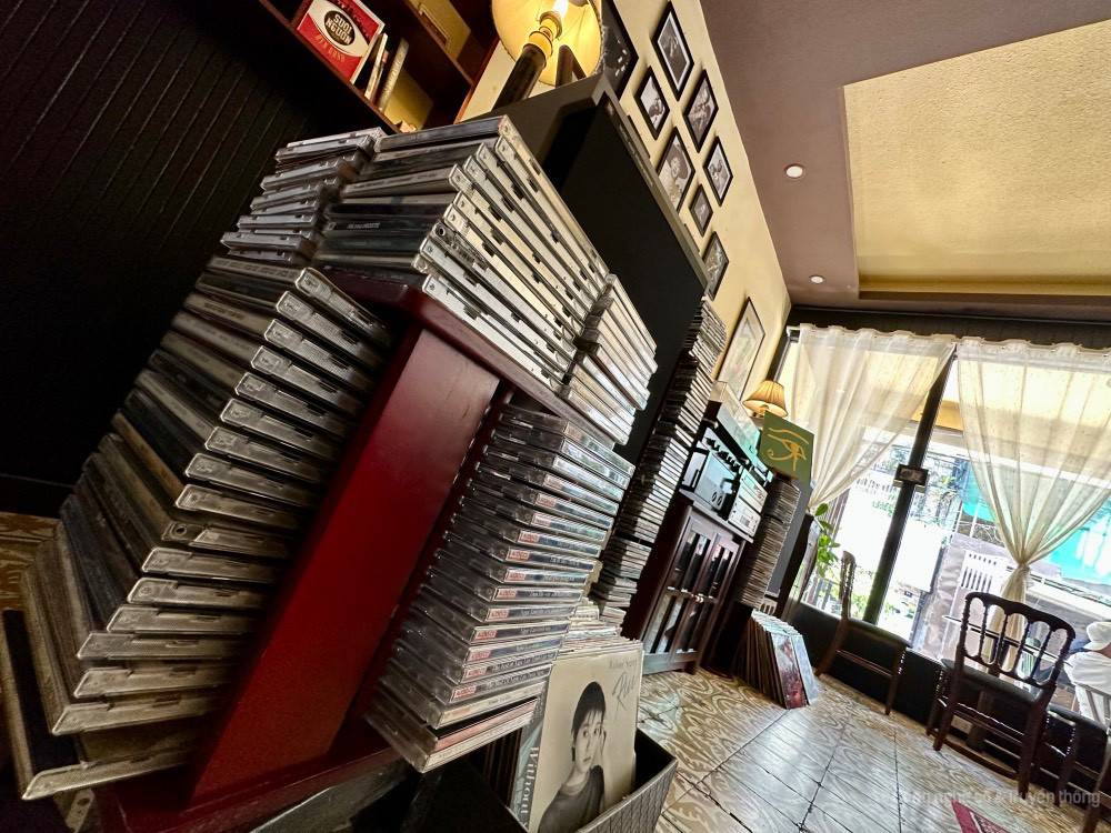 Điểm đến quen thuộc tiếp theo là quán cà phê nghe nhạc cổ. Có đầy đủ các loại đĩa than, đĩa CD với những bài nhạc cũ xưa gợi nhiều ký ức. Làm một ly cà phê trứng, một tách trà gừng, ngồi trong không gian này ngắm khách đi trên phố qua khung cửa là cách thưởng thức Đà Lạt tuyệt vời.