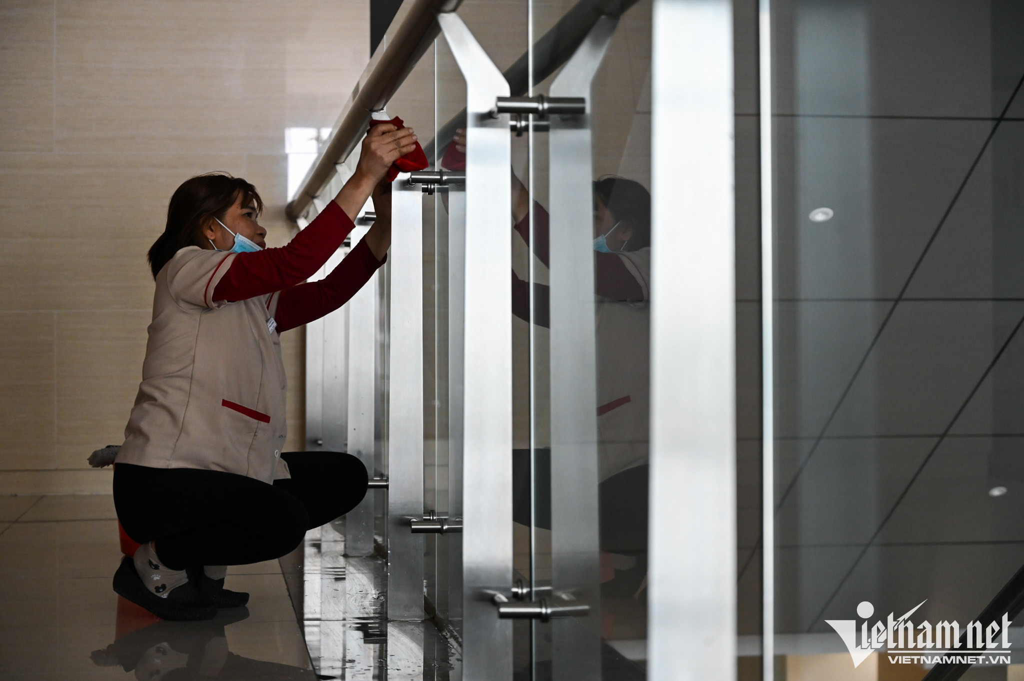 Riêng tầng 4, 5 và 6 dừng hoạt động hoàn toàn, thang cuốn nghỉ vận hành, các dãy hành lang tối thui, không có người qua lại.