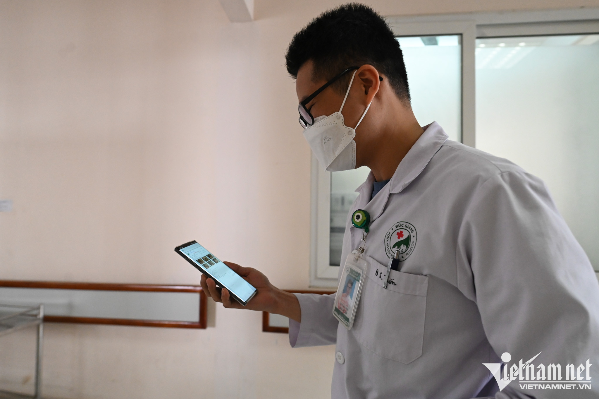 “Gần nửa năm nay, thay vì ôm từng chồng bệnh án khi thăm khám từng bệnh nhân tại giường, mỗi bác sĩ chỉ cần cầm điện thoại cài “App đi buồng”. Đây là thiết bị cho phép truy cập, rà soát thông tin nhanh từ lịch sử điều trị, dị ứng thuốc, ra y lệnh ngay tại giường bệnh và cập nhật ngay lên bệnh án bệnh nhân thay vì ghi chép. Bệnh nhân cũng được xem kết quả chiếu chụp, siêu âm, xét nghiệm ngay trên ứng dụng này”, bác sĩ Tiến nói.