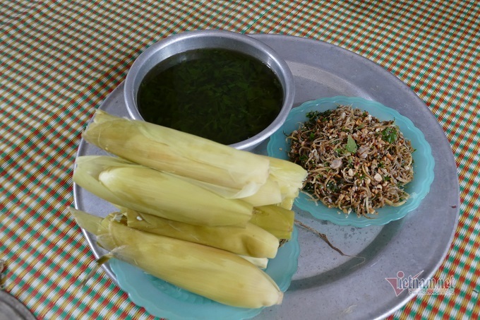 Mỗi bữa cơm, sau tiếng kẻng, mọi người tập trung lại khu nhà ăn, chuẩn bị mâm bát. Bữa cơm là những sản vật nhà chùa trồng cấy được.