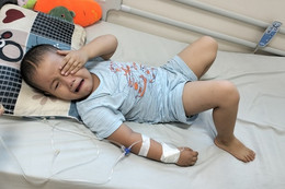 Chị Thành vẫn còn nhớ như in khoảng thời gian con mới phát bệnh, tay chân yếu ớt chẳng thể tự đứng. Mãi khi hơn 2 tuổi, sau 3 đợt điều trị hóa chất, Viết Huy mới bắt đầu chập chững từng bước. Người mẹ chẳng đếm xuể những đợt thuốc đã truyền vào cơ thể non nớt trong 4 năm qua, chỉ còn ấn tượng lại hình ảnh con trai trằn trọc cả ngày đêm, nỉ non khóc xin mẹ giúp vơi bớt đau nhức.