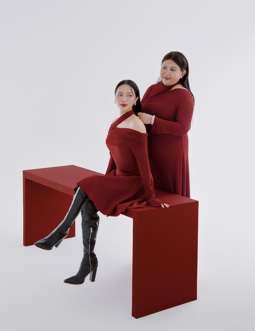 Với sự tích cực trong bộ hình kỷ niệm, Diệu Nhi và mẹ lựa chọn hai thiết kế tông đỏ rực rỡ, làm bật lên không khí tươi sáng, may mắn mùa lễ hội và đặc biệt phù hợp cho dịp Tết truyền thống.
