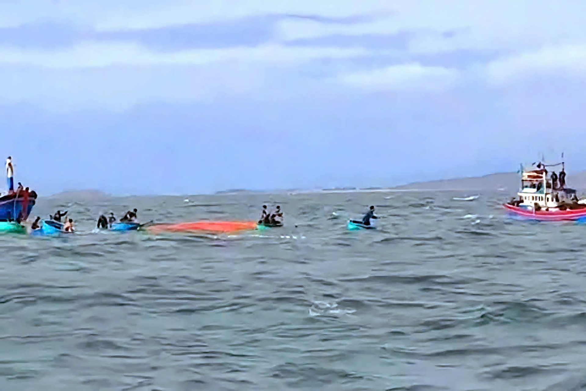 Tàu cá đang đánh bắt trên vùng biển Ninh Thuận bất ngờ bị sóng đánh chìm. Có 11 người được cứu nhưng 1 ngư dân tử vong sau đó do sức khỏe yếu.