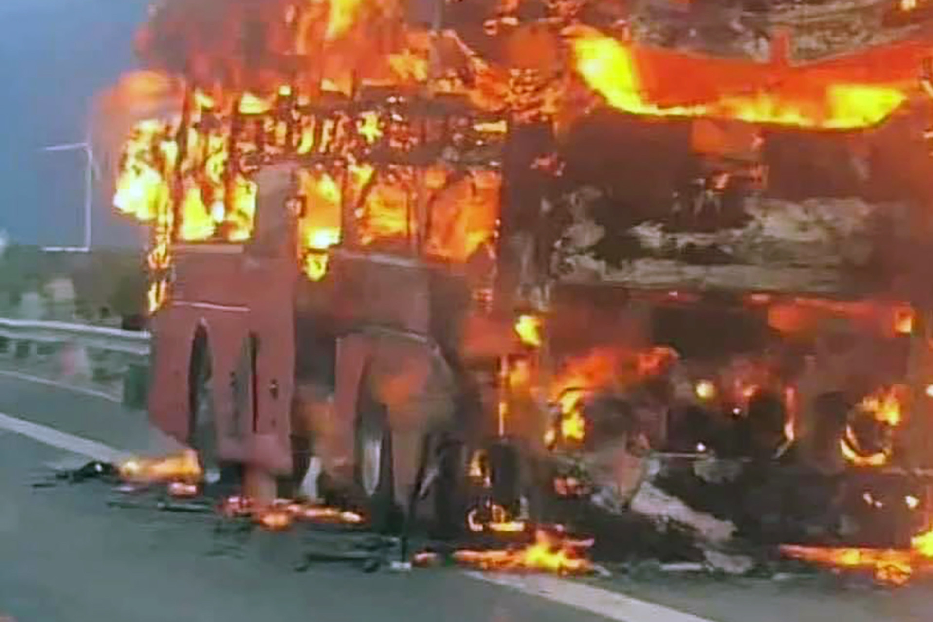 Xe khách giường nằm chạy trên cao tốc Cam Lâm - Vĩnh Hảo, khi qua tỉnh Ninh Thuận bất ngờ bốc cháy dữ dội, hơn 30 người ở trên xe hoảng loạn tháo chạy.