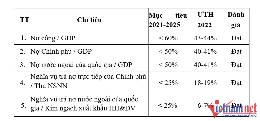 "Các chỉ tiêu an toàn nợ công đến cuối năm 2022 tiếp tục được kiểm soát chặt chẽ trong giới hạn được Quốc hội phê chuẩn, đảm bảo an ninh tài chính quốc gia và góp phần củng cố tính bền vững của chính sách tài khóa, tạo dư địa dự phòng để có thể chủ động ứng phó với rủi ro vĩ mô", Chính phủ báo cáo.