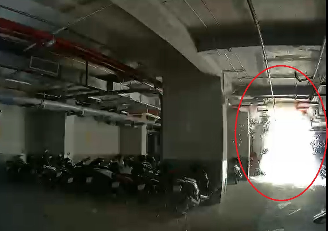Theo hình ảnh từ camera hành trình của một ô tô ghi lại, vào khoảng 19h37 tối 27/9, khi một xe ô tô đang di chuyển trong tầng hầm chung cư để tìm nơi đỗ thì bất ngờ bóng đèn chiếu sáng nằm trên trần phát nổ, bốc khói.