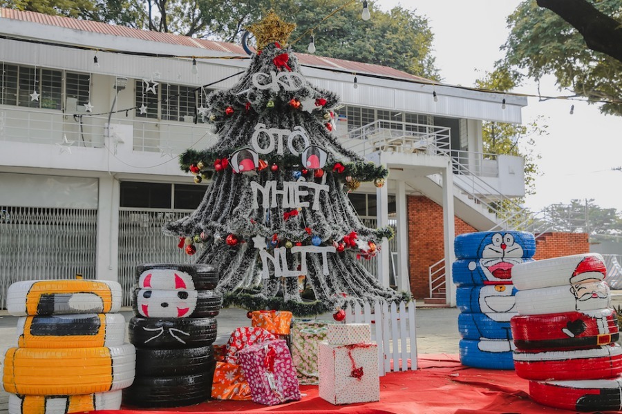 Sinh viên trang hoàng Giáng sinh bằng vật liệu tái chế
