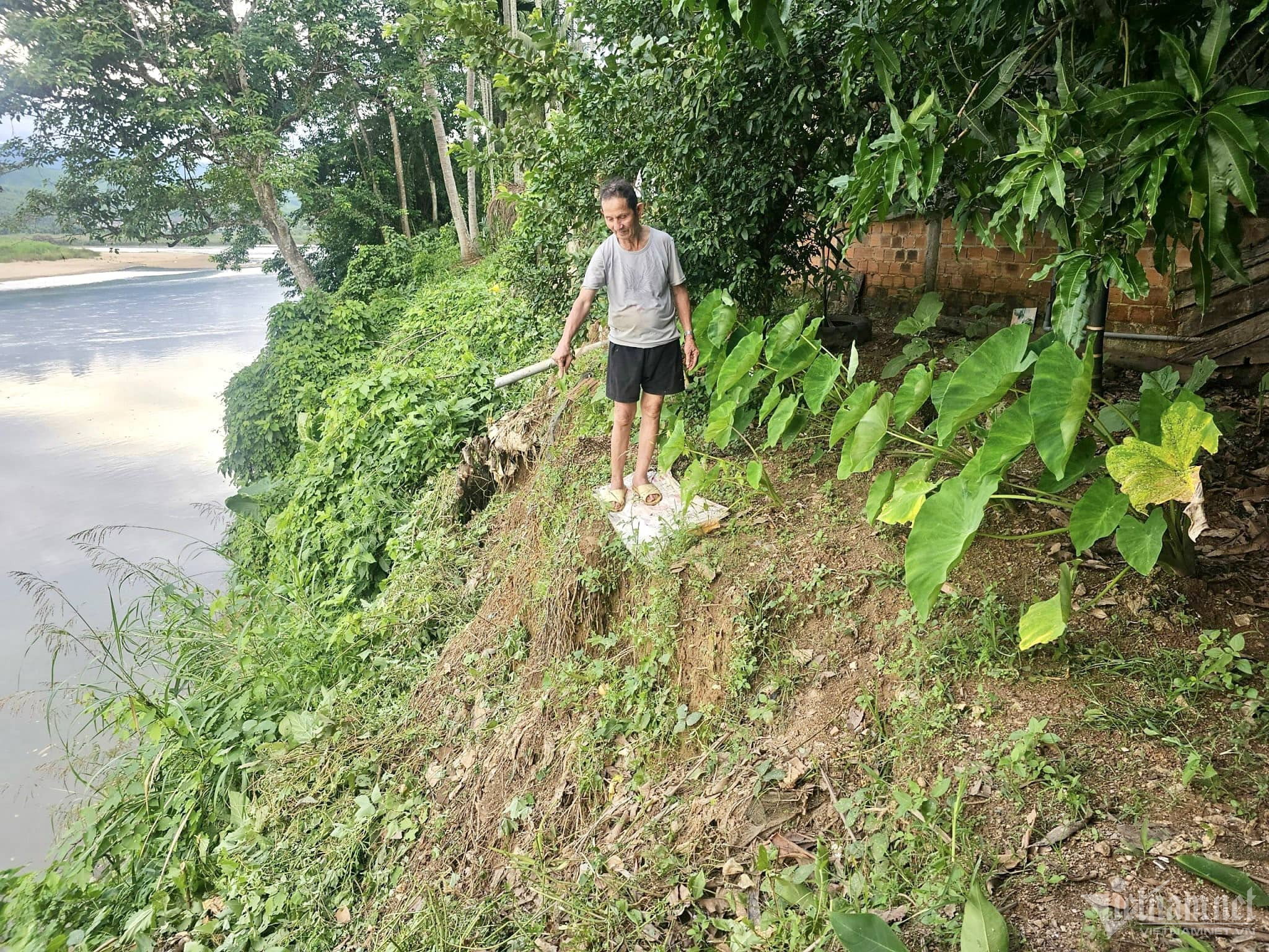 “Mưa lớn là nhà tôi thu dọn đi ở nhờ nhà người quen. Cứ một năm sạt đến vài mét đất, giờ sát vào nhà chúng tôi rồi. Chỉ mong Nhà nước hỗ trợ làm kè để chúng tôi được yên tâm sinh sống”, ông Đề nói.