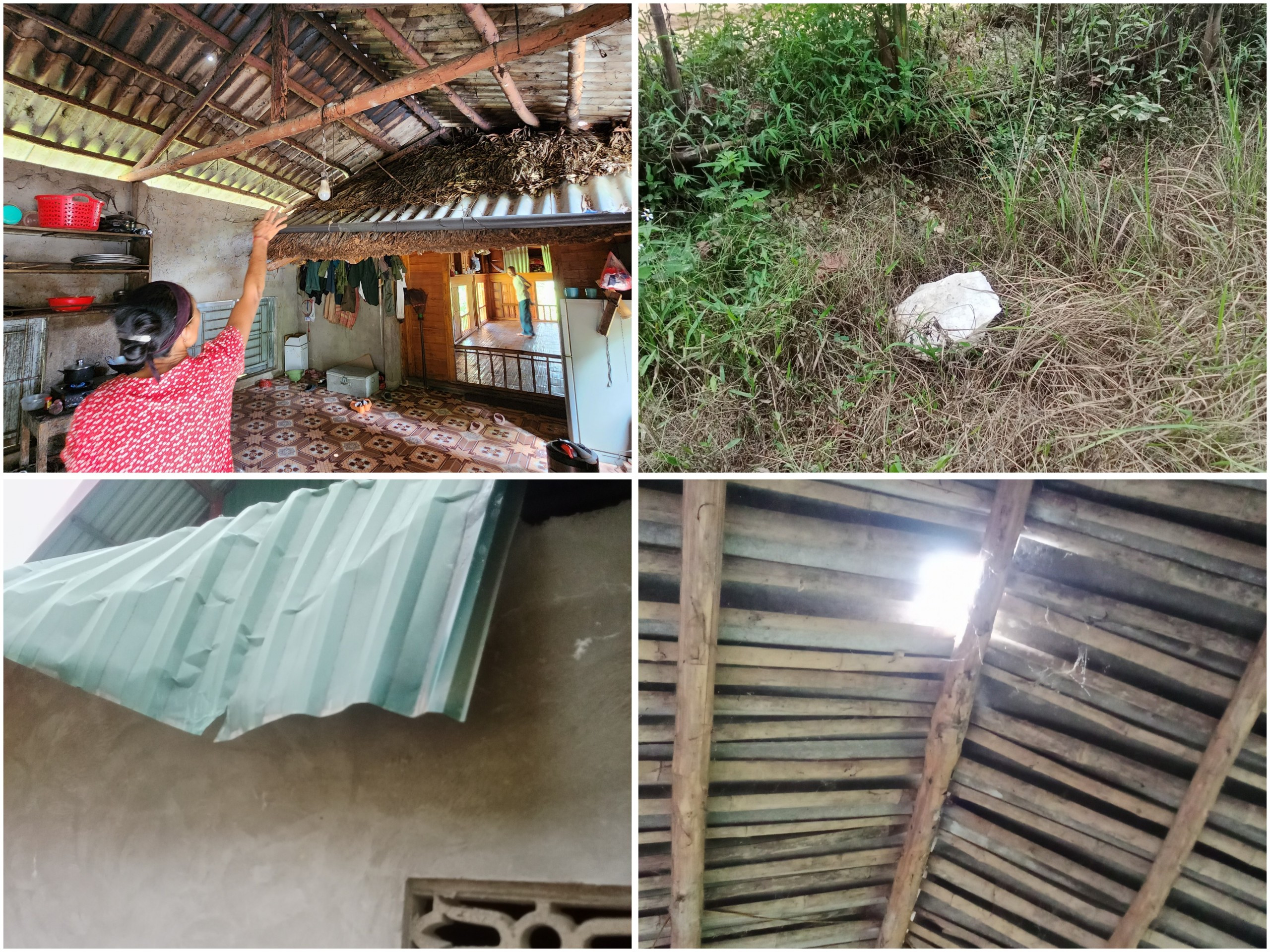 Mẹ anh Quyền là bà Hoàng Thị Tính cho hay, có hôm gia đình đang nấu cơm tối thì bất ngờ nghe tiếng động lớn, khi chạy ra thì thấy hòn đá đường kính lớn xuyên thủng mái tôn nhà tắm.