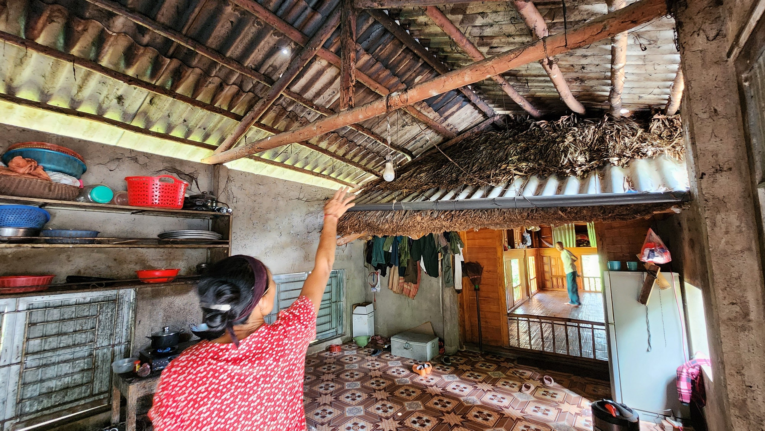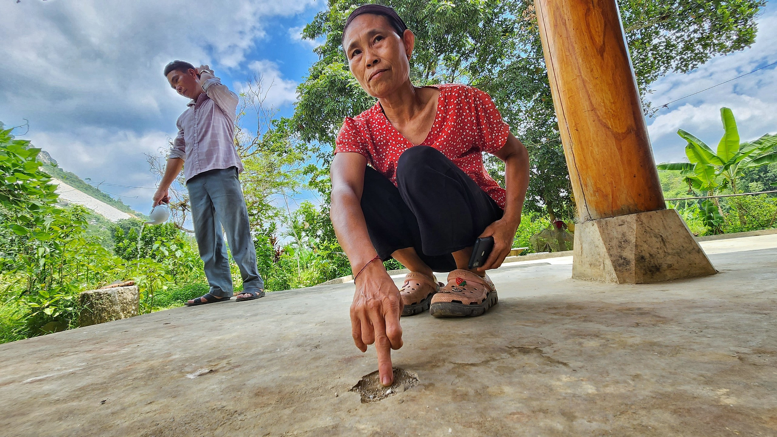 "Đến nay tôi không nhớ đã phối hợp lập bao nhiêu biên bản về việc này. Có nhà vẫn giữ nguyên hiện trạng đá văng vào bể nước, có nhà đá gây lún cả nền, có nhà phải thay mái tôn vì lỗ thủng do đá văng gây ra quá lớn", Trưởng thôn Làng Thọc thông tin.
