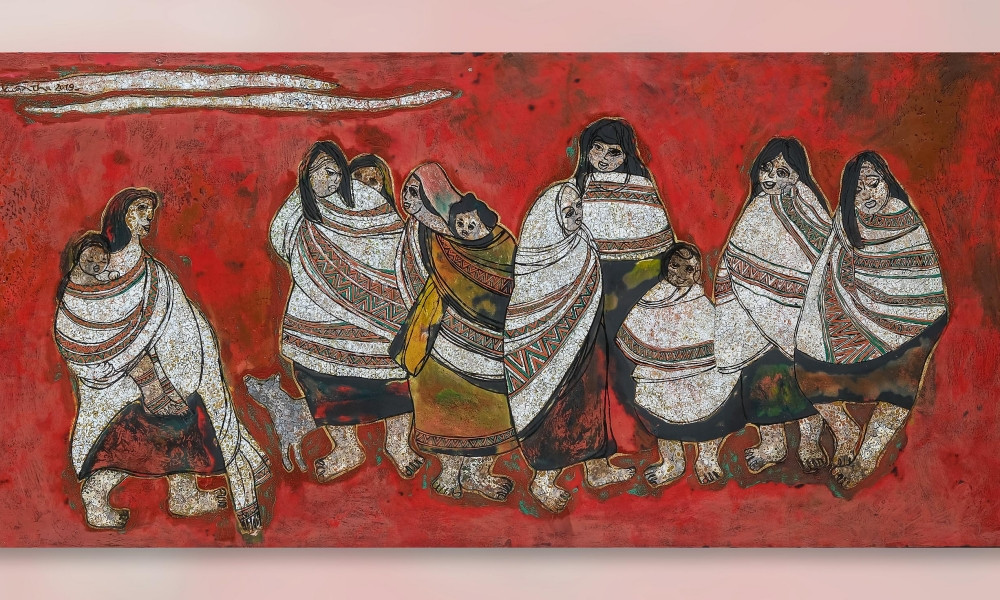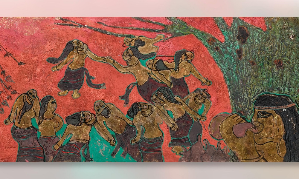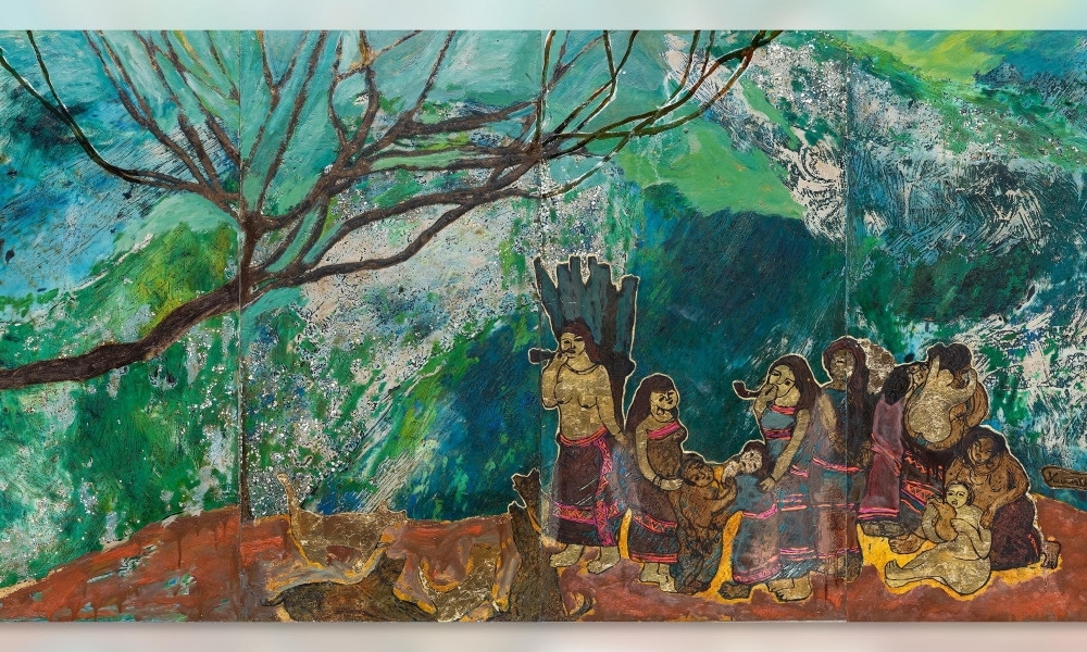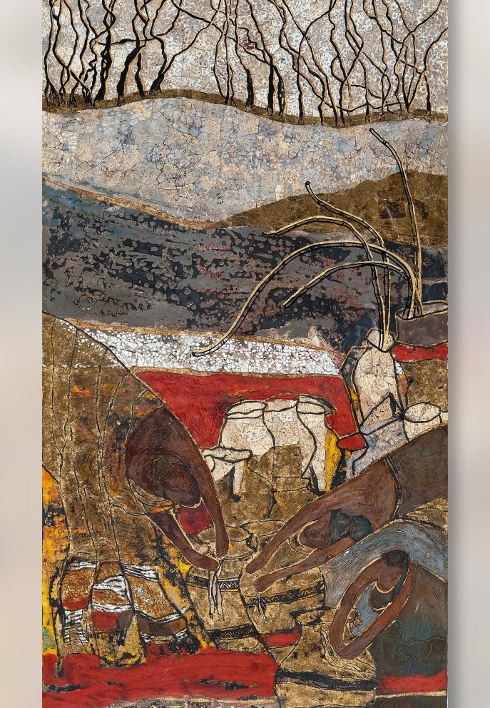 Và tôi cảm nhận ở mỗi bức tranh có âm thanh rì rào, các giai điệu trầm bổng xa xa cũng đang hỏi thăm nhau. Đó là các câu chuyện giữa người với người Tây Nguyên, là chuyện làng mình”, chị chia sẻ.