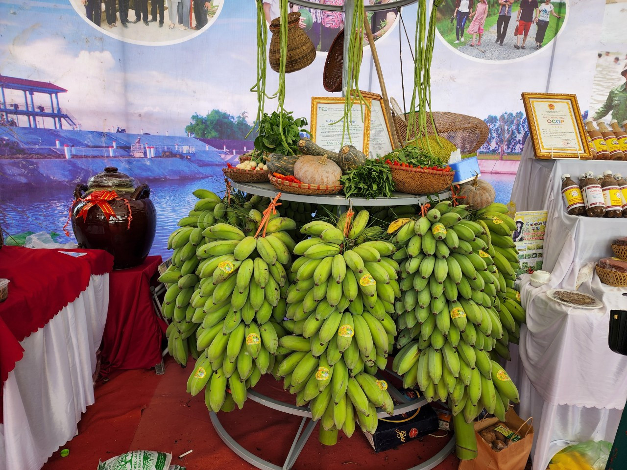 Tổng sản lượng nông sản hữu cơ hàng năm thu được là khoảng 2.300 tấn (lúa 1.230 tấn, rươi 200 tấn, cáy 90 tấn, chuối 780 tấn), cho thu nhập từ 400-450 triệu đồng/ha/năm.