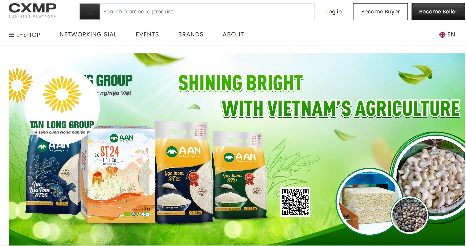 Tại sàn thương mại điện tử CXMP, các loại gạo, hạt điều, hạt tiêu, cà phê… của những đơn vị nổi tiếng như Tân Long Group, Sunrise Food, Long An Food… đều được trưng bày trang trọng, bắt mắt. Người tiêu dùng khắp nơi trên thế giới có thể tìm hiểu thông tin chi tiết về sản phẩm, từ nơi sản xuất, thông số dinh dưỡng, công nghệ nuôi trồng, quy trình đóng gói, chứng nhận an toàn… Theo thông tin từ Sial Paris 2022, với quy mô khách tham dự hội chợ quốc tế năm nay, cơ hội để nông sản Việt Nam tiếp cận tới khách hàng, mở rộng thị trường là vô cùng lớn.