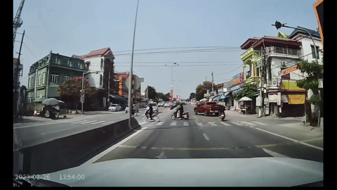 Hai xe máy va nhau ngã sõng soài ngay trước mũi ô tô bởi lỗi đáng trách