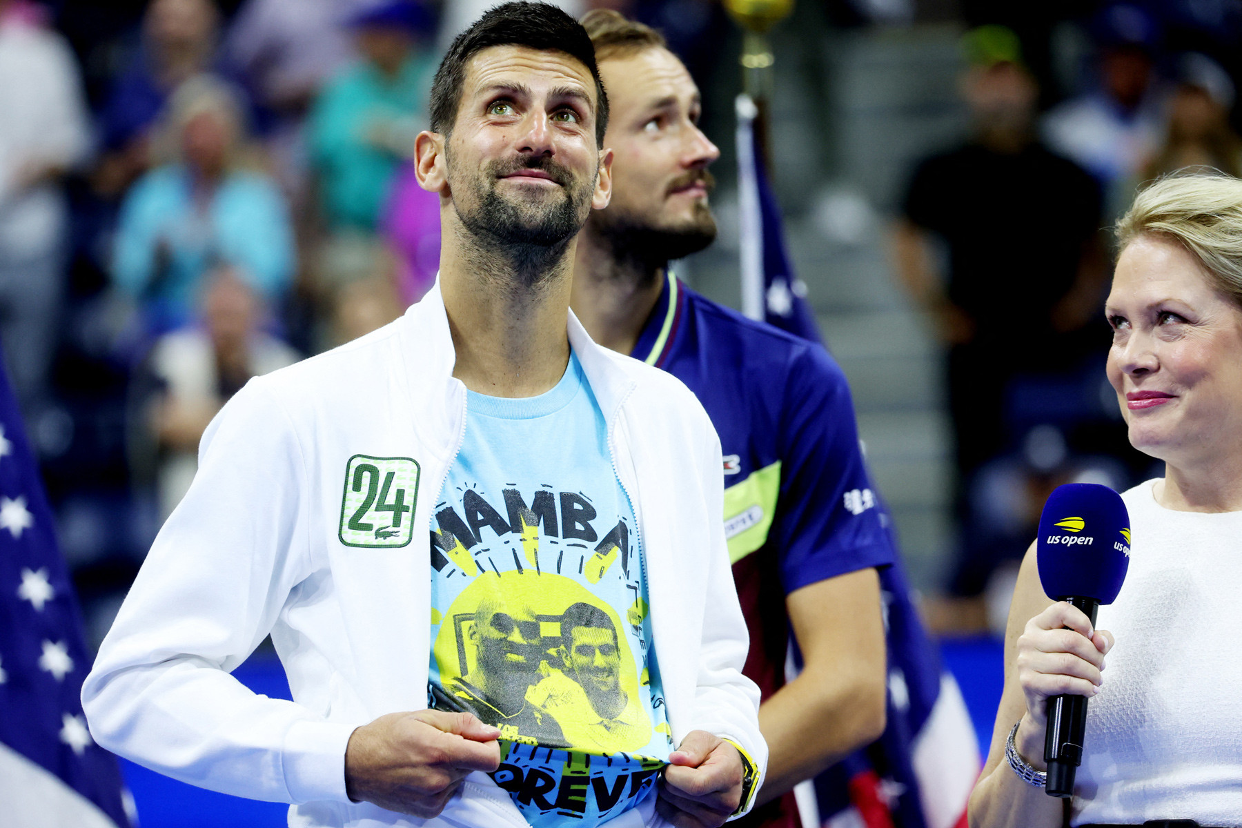 Vui mừng và phấn khích, Djokovic khoác lên mình chiếc áo có số 24 mà cầu thủ bóng rổ Kobe Bryant từng mặc trong suốt một thập kỷ (anh cũng mặc số 8 trong 10 năm), người qua đời vào năm 2020 trong một vụ tai nạn trực thăng. Chiến thắng được dành cho Kobe.