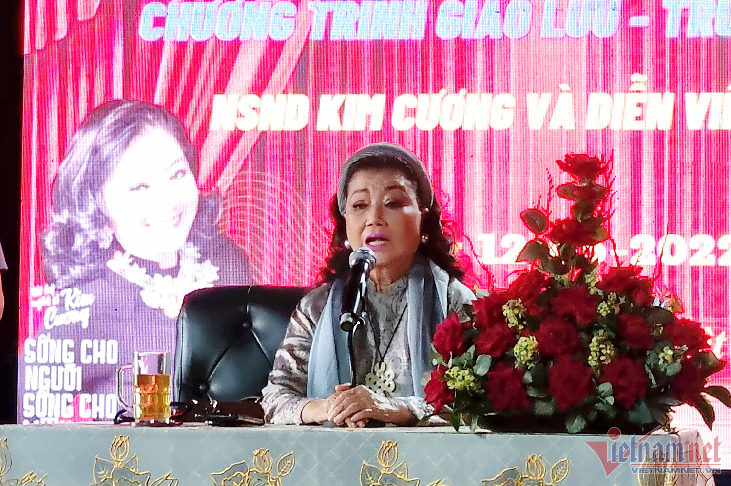 NSND Kim Cương vừa có buổi chia sẻ với diễn viên trẻ tại Hội Sân khấu TP.HCM. Bà mở lời: "Tôi già, yếu rồi, hiện không khỏe nhưng nếu từ chối lời mời thì không biết có còn dịp khác không. Tôi luôn đứng sau tiếp "lửa" các bạn vì thương lớp diễn viên trẻ đồng thời cũng là cách tôi đền ơn người đi trước dạy dỗ mình".