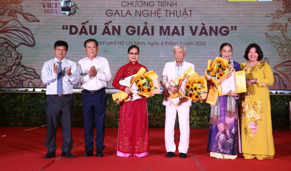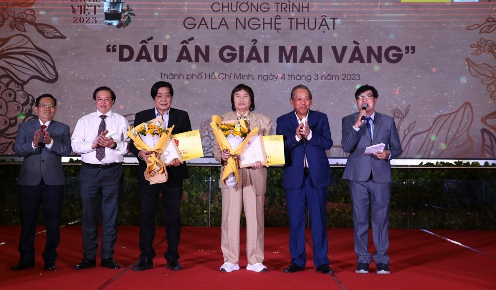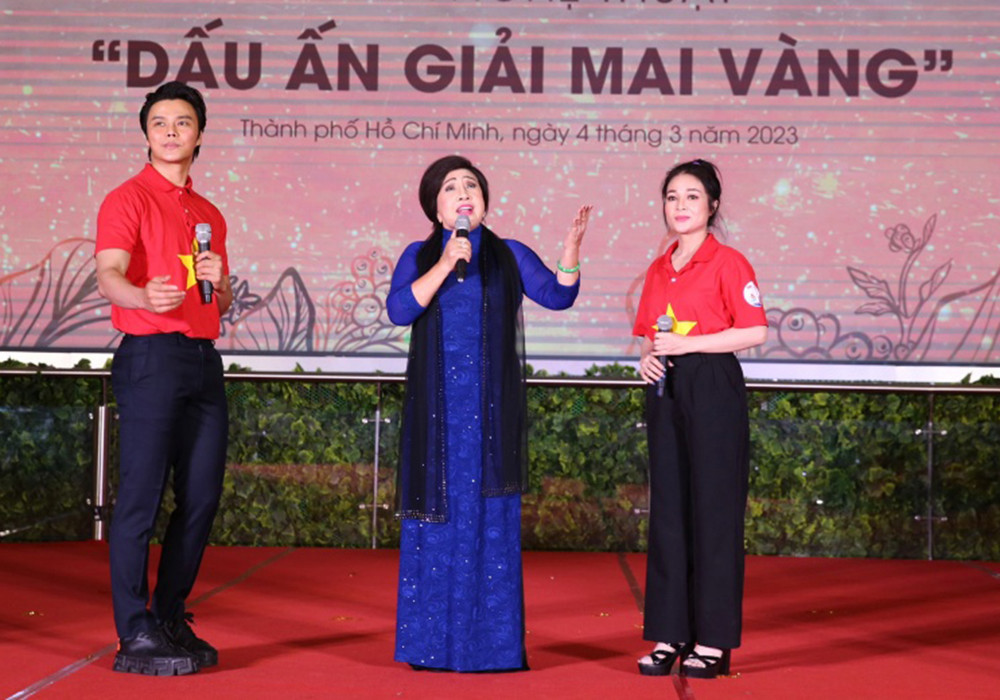 Gala nghệ thuật "Dấu ấn Giải Mai Vàng" do báo Người lao động tổ chức vừa diễn ra tại TP.HCM. Chương trình mang ý nghĩa tri ân những cống hiến của văn nghệ sĩ, nhà nghiên cứu… có nhiều đóng góp cho xã hội, đồng thời đưa họ đến gần hơn với khán giả. NSND Minh Vương góp mặt với bài ca cổ "Nhớ dáng áo dài em" và nhận nhiều tràng vỗ tay nhờ giữ phong độ giọng hát, làn hơi khỏe. Ông là một trong 5 nghệ sĩ được chương trình vinh danh trong năm nay. Ở tuổi 73, Minh Vương hạn chế chạy show vì sức khỏe đã yếu hơn. Nam nghệ sĩ quan niệm sống chậm lại, tận hưởng tuổi già và truyền nghề cho thế hệ ca sĩ sau.NSND Lệ Thủy dùng 100 triệu đồng nhận được từ chương trình, hỗ trợ xây nhà tình thương cho hai hộ nông dân nghèo tại Đồng Tháp. Nhiều năm qua, bà vẫn miệt mài với công tác thiện nguyện và được vinh danh giải "Nghệ sĩ trọn đời vì cộng đồng". NSND Lệ Thủy tái hiện ca cảnh "Tự hào miền Tổ quốc" cùng các nghệ sĩ trẻ. "Tuổi này tôi biết ơn tổ nghề cho mình còn cơ hội đứng trên sân khấu", bà chia sẻ. Nghệ sĩ Thanh Hằng góp giọng trong một tiết mục. Vài năm qua, chị về lại Việt Nam sinh sống và hoạt động nghề sau thời gian dài định cư ở Úc.