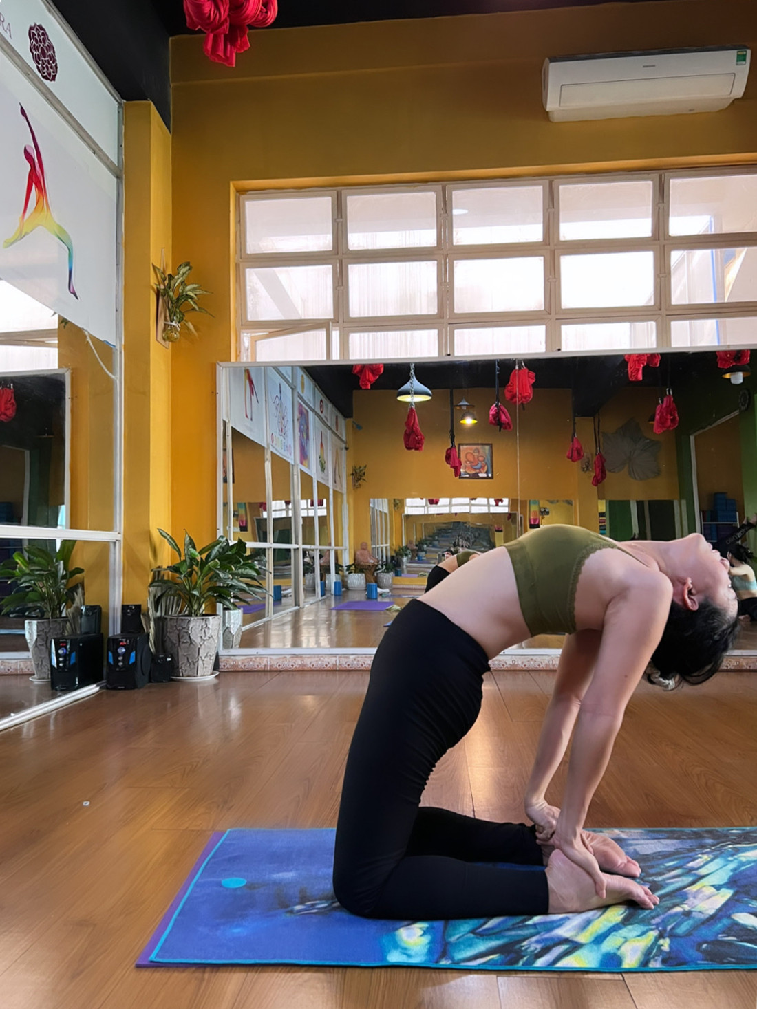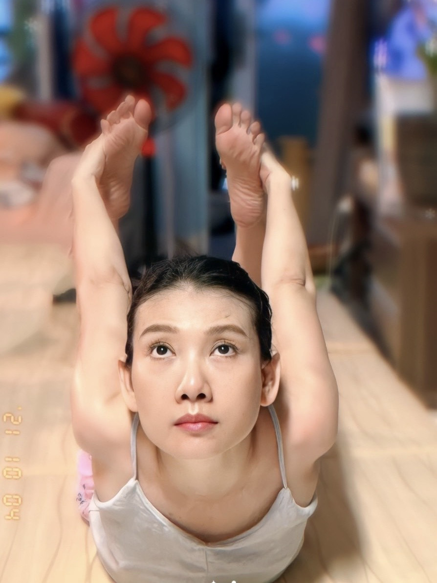 Mỹ Uyên tập yoga để cơ thể khỏe mạnh. Các động tác giúp nghệ sĩ thuyên giảm chứng đau cổ, vai, gáy từng khiến chị mất ngủ. Khi chăm tập luyện, chị cảm nhận lưu thông máu, hệ tiêu hóa... đều được cải thiện.