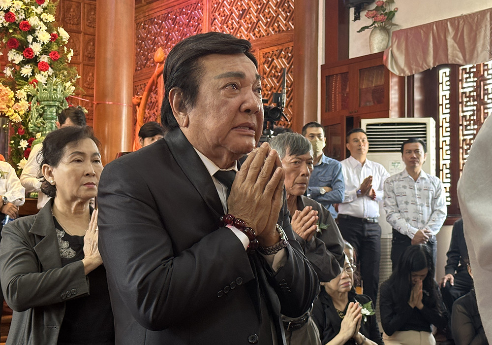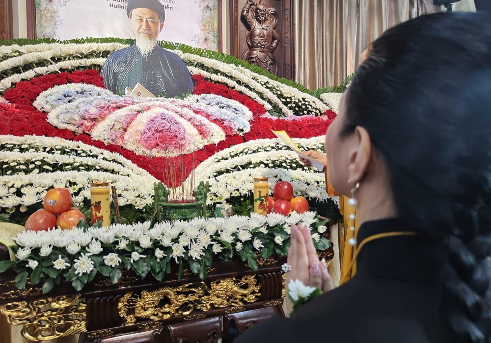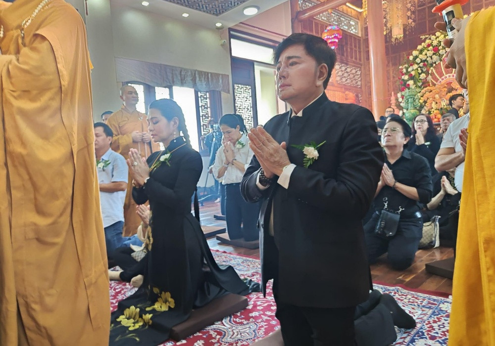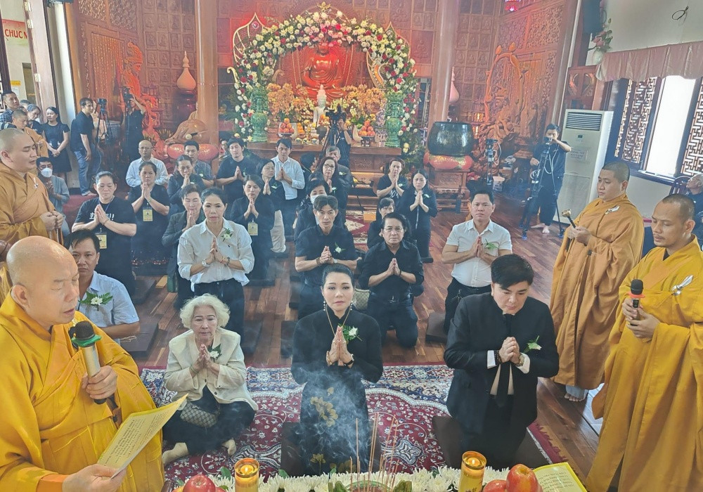 Các nghệ sĩ Ngọc Huyền, Châu Thanh, Phú Quý,... cùng gia đình thắp hương cầu nguyện, tưởng nhớ 'ông hội đồng' Diệp Lang.