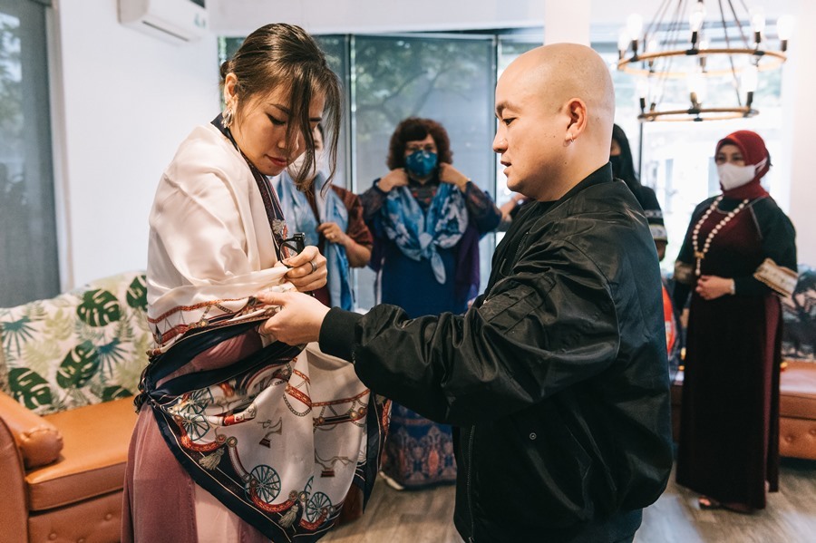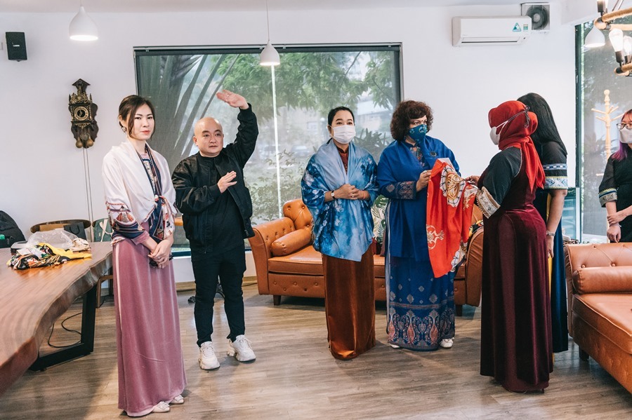 Tại buổi giao lưu, NTK Cao Minh Tiến đã hướng dẫn các nữ cán bộ và phu nhân Đại sứ sử dụng khăn lụa sao cho đẹp, hợp thời trang, đặc biệt là khi kết hợp với áo dài Việt Nam. Các khách mời hào hứng, thích thú khi được học hỏi thêm nhiều cách sử dụng khăn lụa một cách khéo léo, tinh tế. Cùng với đó, NTK Cao Minh Tiến cũng hướng dẫn các vị khách mời cách trang điểm phù hợp với từng hoàn cảnh, gương mặt.