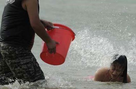 | Người hướng dẫn hắt xô nước vào cô gái |