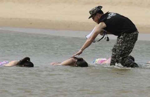 | Các nữ vệ sĩ tương lai mặc bikini và làm theo hướng dẫn của một vệ sĩ chuyên nghiệp |