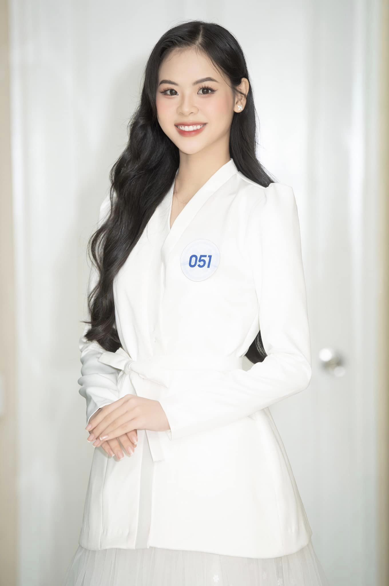 Nguyễn Ngân Hà (SBD 051) là thí sinh đầu tiên lọt top 20 chung cuộc Miss World Vietnam 2023 nhờ chiến thắng danh hiệu Người đẹp Tài năng. Cô sinh năm 2003, quê Nghệ An, cao 1,7m, có số đo 3 vòng: 81-59-95cm, hiện là sinh viên ĐH Kinh tế (ĐH Đà Nẵng). Ngân Hà sở hữu gương mặt phúc hậu đậm chất Á Đông cùng nụ cười rạng rỡ.