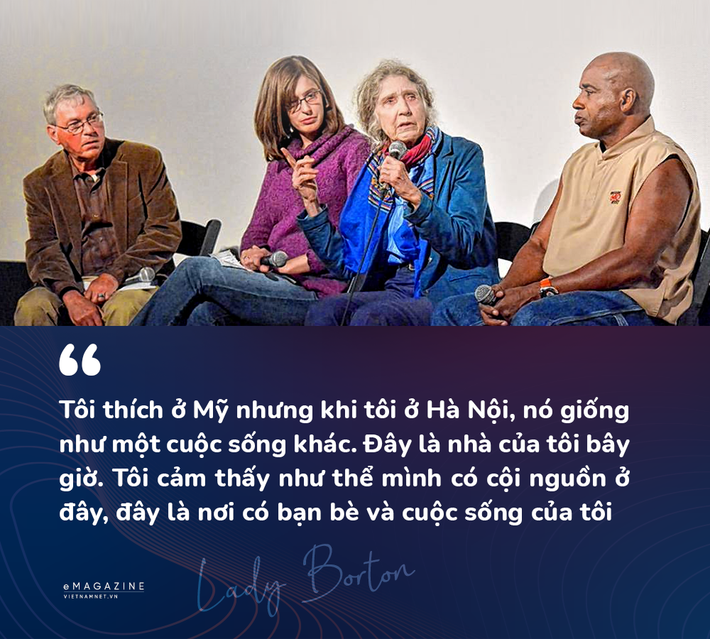 Tôi cũng thấu hiểu sự mất mát đau thương của cả người Mỹ khi họ tham gia cuộc chiến tranh này… Nước Mỹ chúng tôi cũng có rất nhiều những thanh niên bị Mỹ ép, bắt đi lính hoặc có một số ít họ đi lính tự nguyện nhưng nhiều người trong số đó họ đã không trở về hoặc họ bị thương, bị tàn tật hoặc họ bị mất tích... Là một người phụ nữ Mỹ trung thực, tôi cũng rất đau xót”, bà Lady Borton tâm sự.