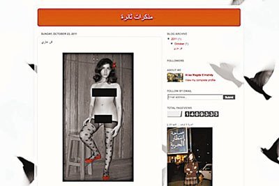 Được biết, nữ sinh Aliaa Magda Elmahdy (20 tuổi) là một nhà hoạt động nhân quyền tích cực tại địa phương. Trong bức ảnh được đưa lên Twitter, Aliaa không mặc gì ngoài đi một đôi tất đen và giày đỏ, mặt thản nhiên nhìn vào ống kính.