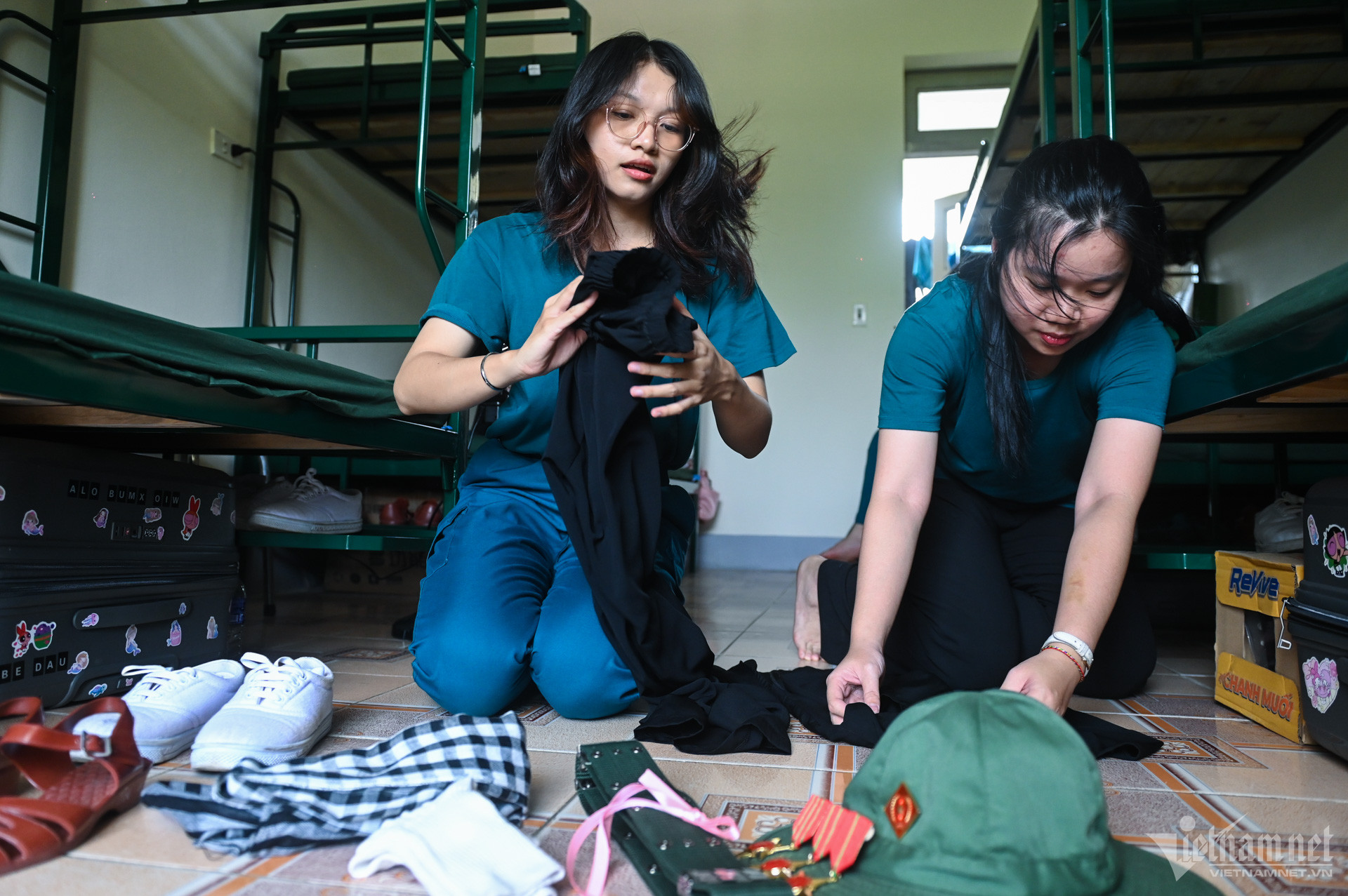 "Hôm đầu tiên ở tập trung, các thầy đã gấp sẵn chăn màn. Hôm thứ hai, từng phòng đều có người lên hướng dẫn làm sao gấp cho đúng tác phong quân đội. Chỉ rất nhanh sau đó thôi, tụi em tự bảo nhau, mỗi khi rảnh lại mang chăn màn ra tự gấp làm sao cho thật vuông vức, dần thành quen", Thảo kể lại.