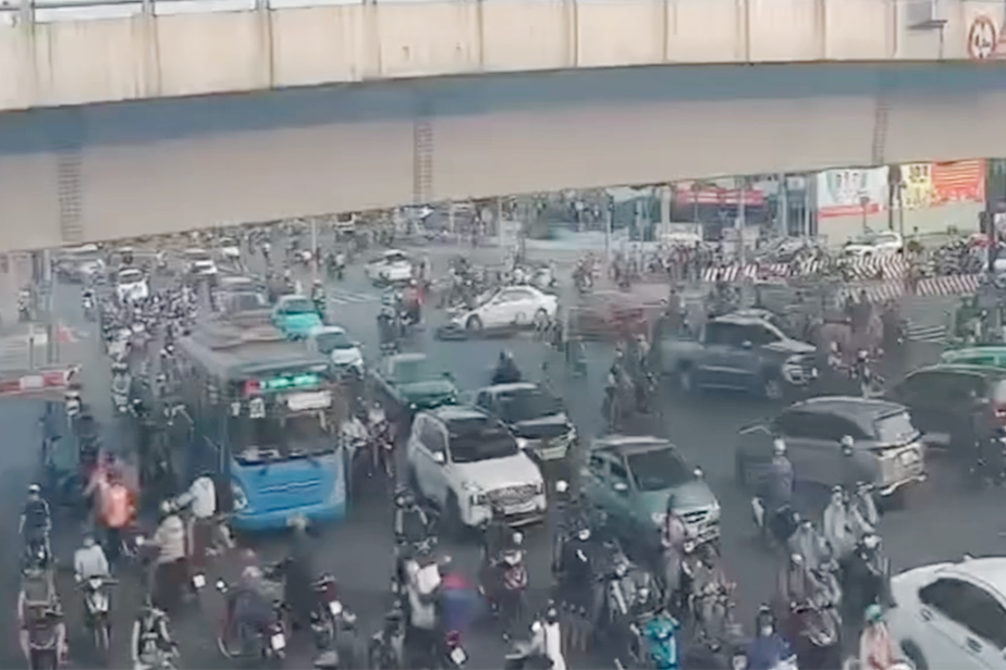 Ô tô tiếp tục lao qua ngã tư, tông vào một xe máy đang lưu thông, cuốn xe máy vào gầm rồi kéo lê vài chục mét. Sau khi gây tai nạn, bà N. bước xuống và bật khóc.