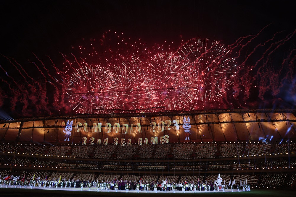 Màn châm đuốc trên không độc đáo sau trong lễ khai mạc, mang đậm bản sắc văn hóa và con người Campuchia đánh dấu SEA Games 32 chính thức được bắt đầu.