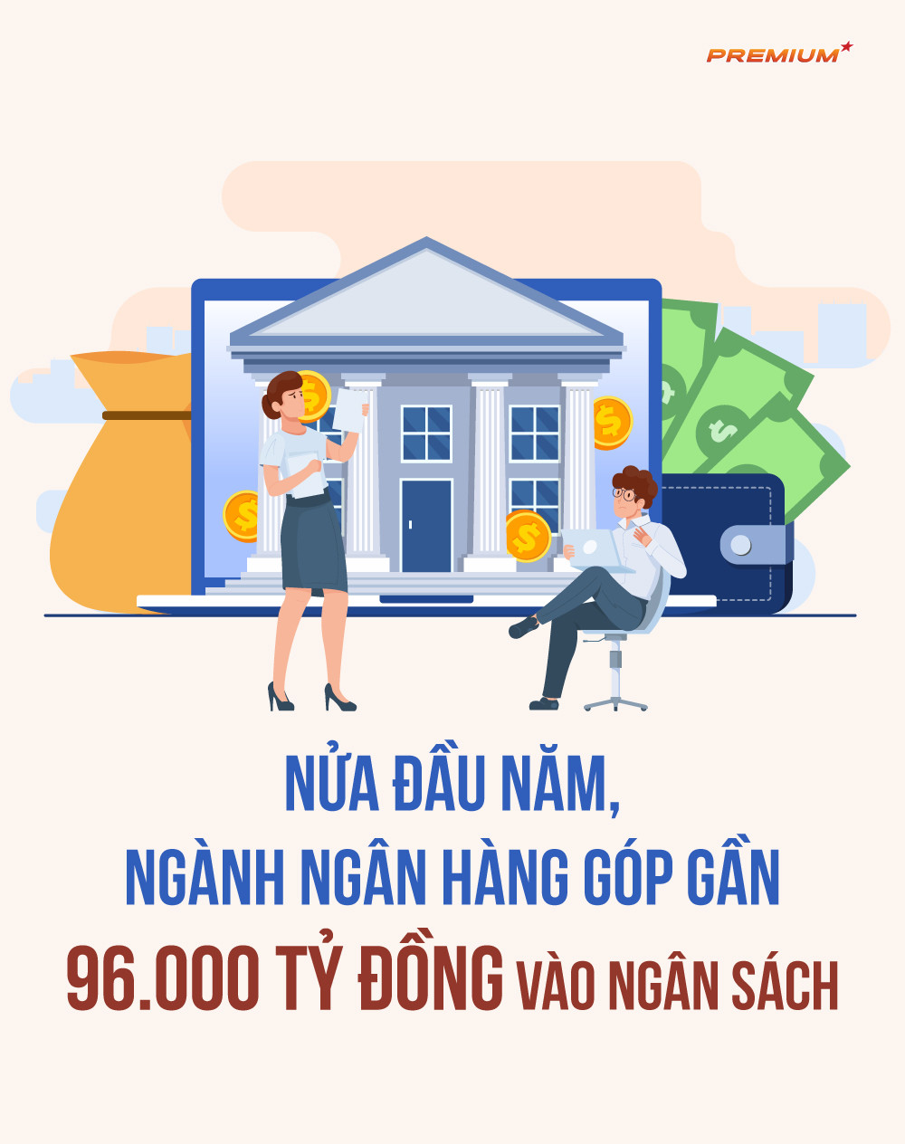 Tổng thu ngân sách Nhà nước 6 tháng đầu năm đạt hơn 1,3 triệu tỷ đồng, trong đó, ngành ngân hàng là một trong những khu vực nộp ngân sách lớn nhất với 95.500-96.000 tỷ đồng.
