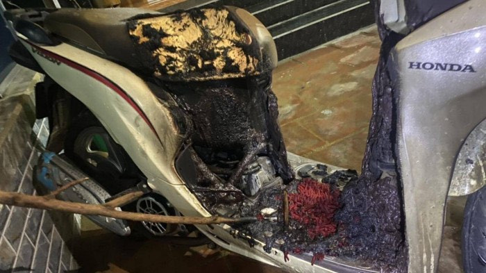 Chị Th. chạy ra kiểm tra thì tá hoả phát hiện chiếc xe máy nhãn hiệu Vision của gia đình đang bốc cháy dữ dội nên đã trình báo lực lượng chức năng.