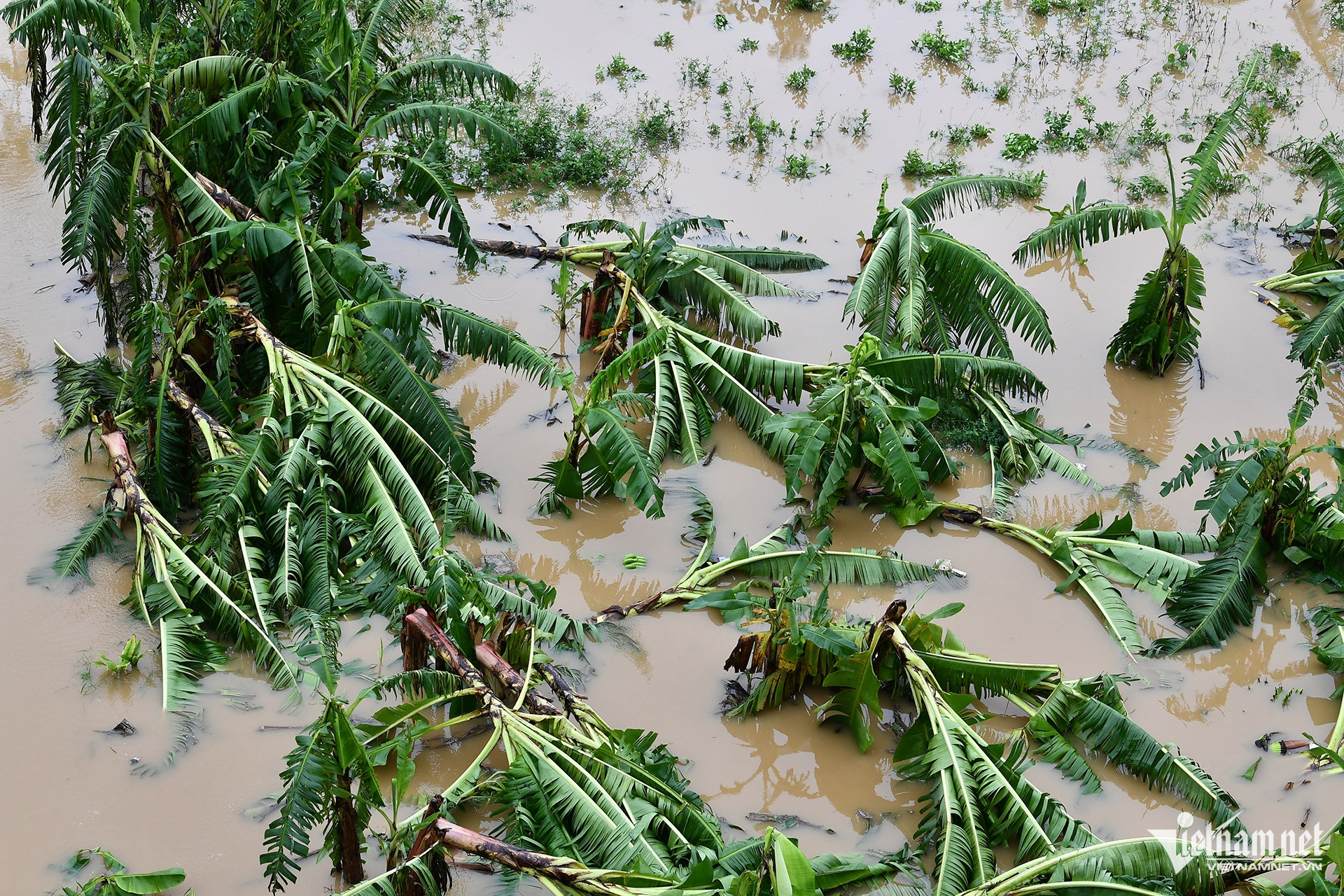 Cả một tảng cây cỏ trôi lềnh bềnh qua địa phận Hà Nội.