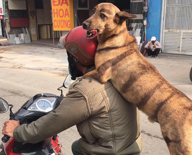 Chú chó ngồi sau xe máy lè lưỡi cực yêu "gây bão" mạng