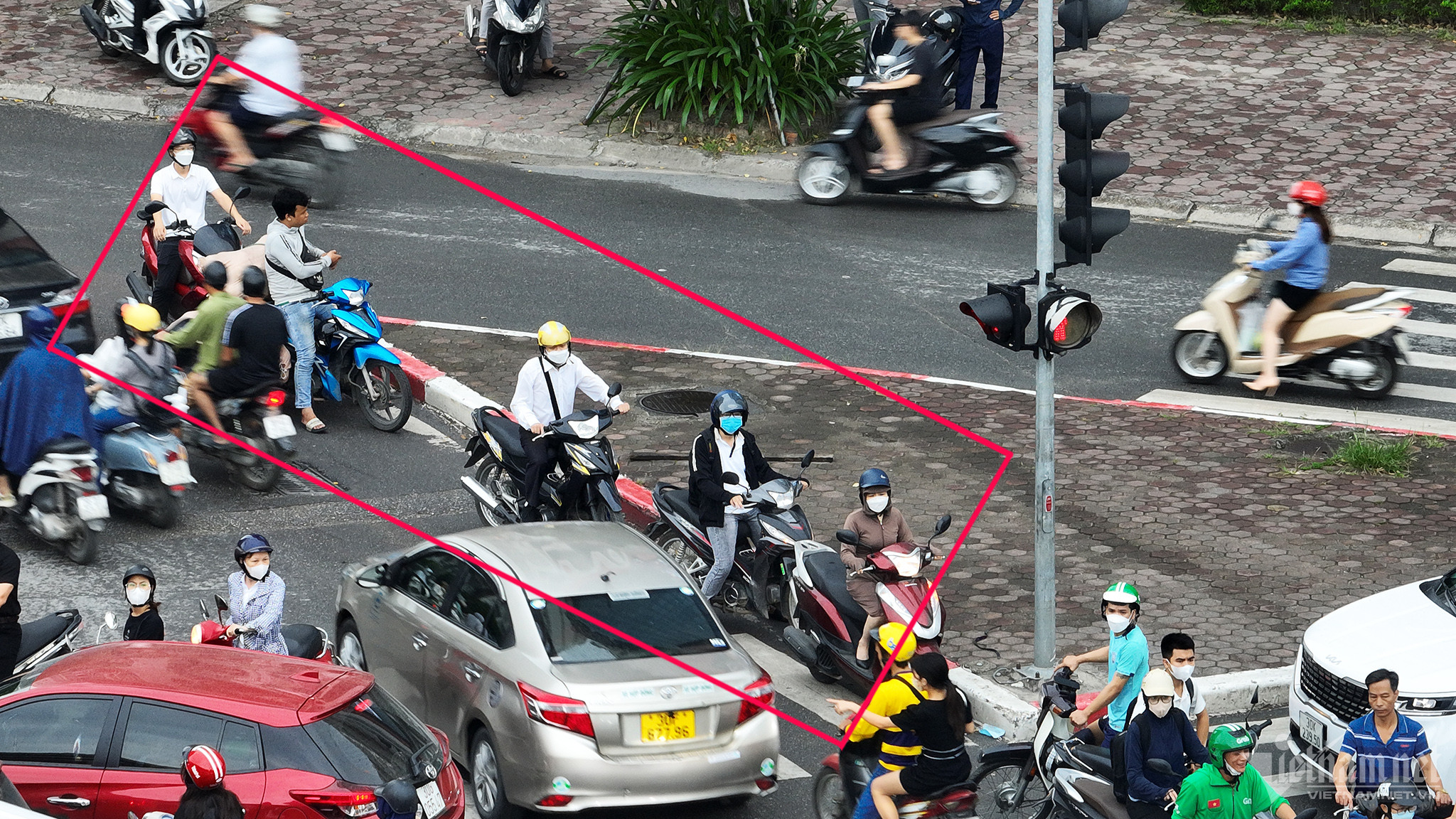 Trong ảnh, người đi xe máy len vào bất cứ khe hở nào để tìm lối thoát qua ngã tư đang rối loạn.