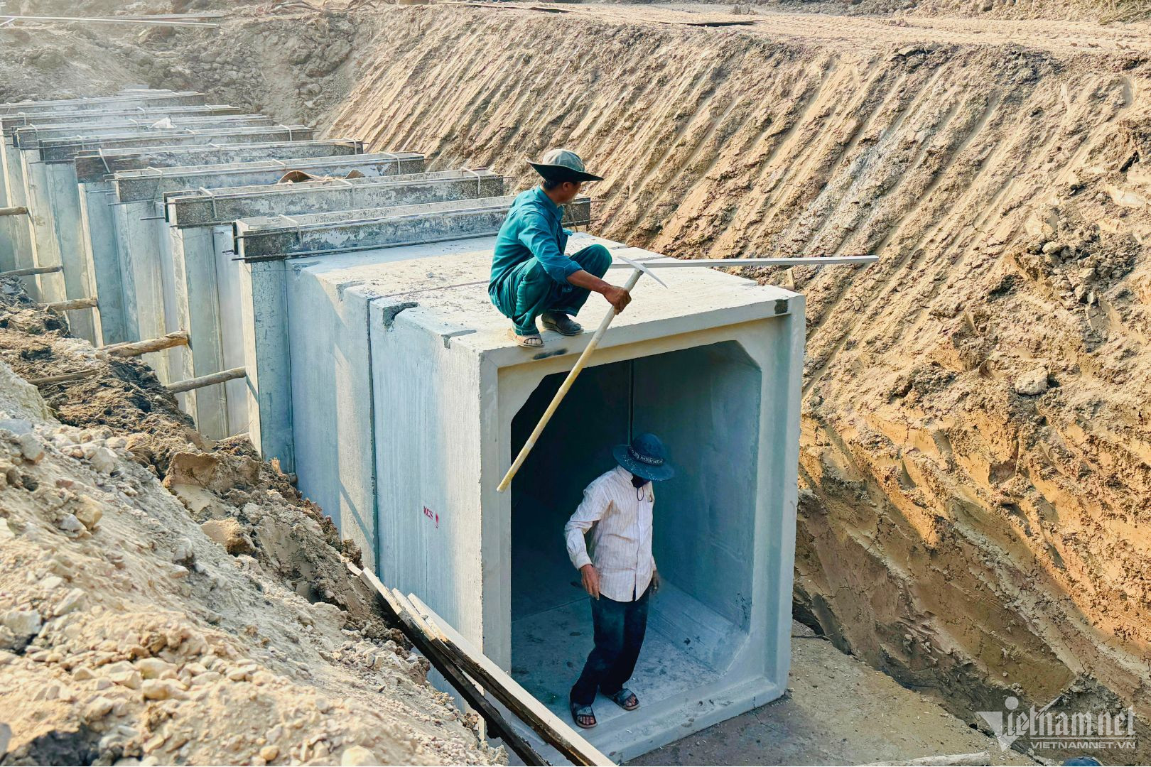 Hiện tại, nhà thầu thi công chỉ mới đạt tiến độ khoảng 5% gồm triển khai cầm chừng hệ thống cống hộp dài 624m, đường dẫn thoát nước đấu nối thoát nước của dự án, thi công tuyến đường biên phía Nam của dự án.